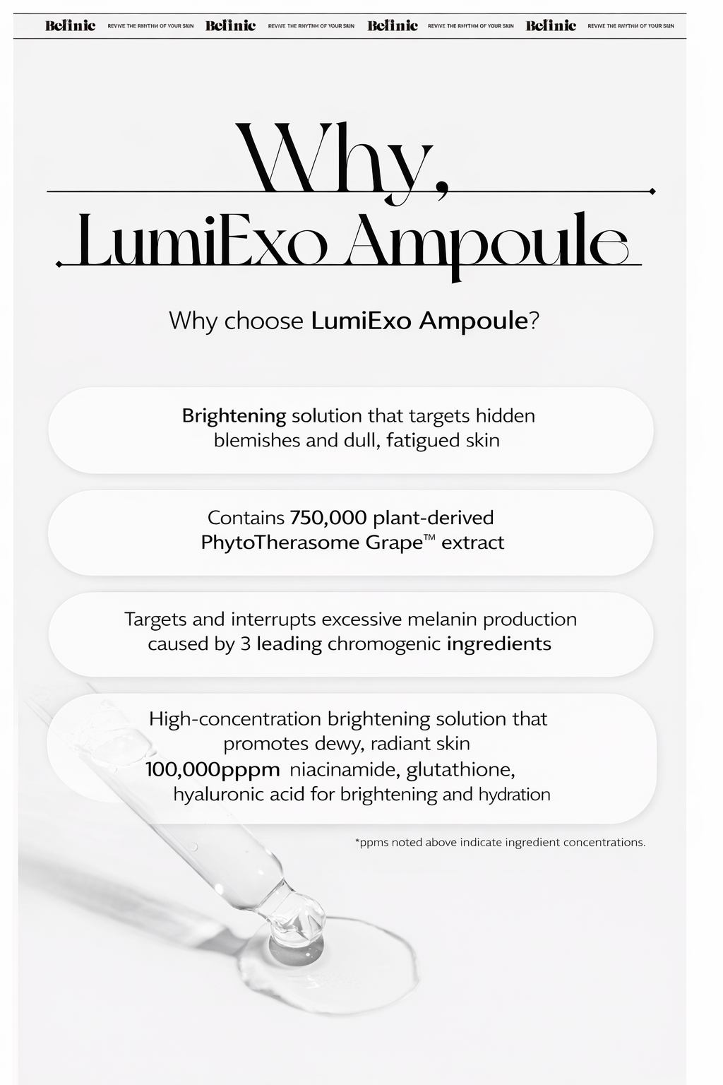A lightweight yet concentrated ampoule that absorbs smoothly into the skin.